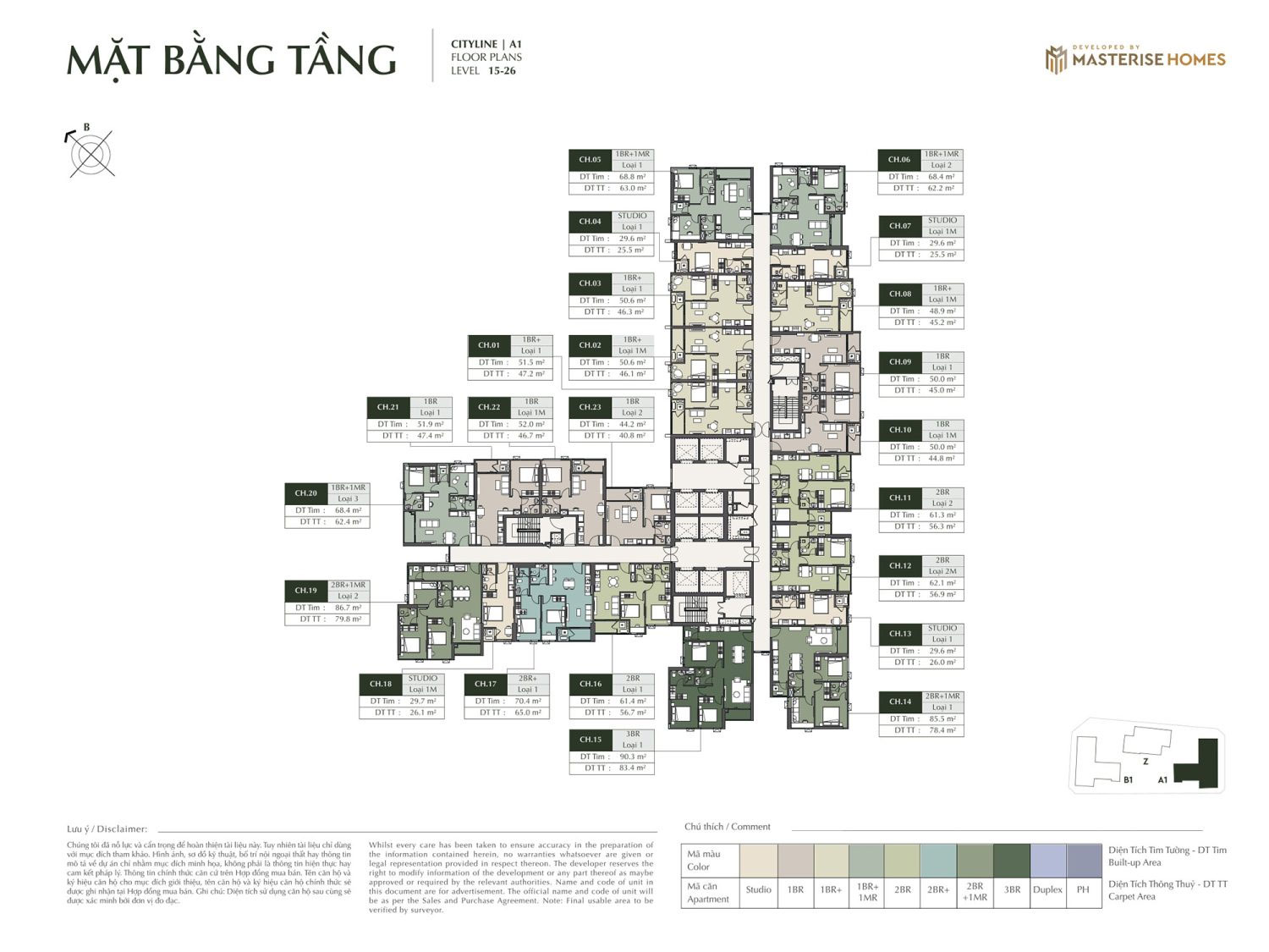 Diện tích căn hộ: 25.5 – 83.4 m2