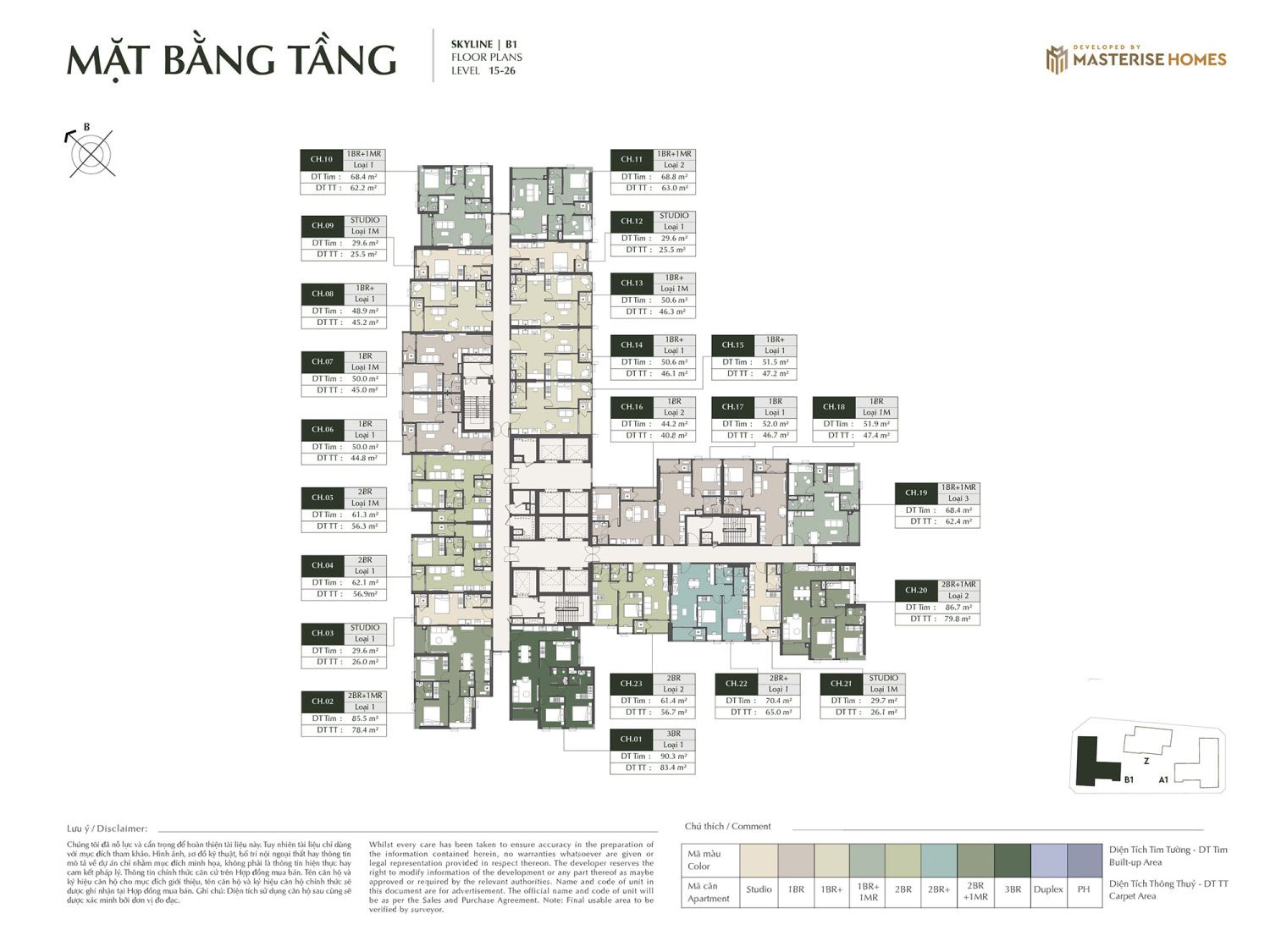 Loại hình căn hộ: Studio, 1PN, 1PN+1, 2PN, 2PN+1, 3PN, Duplex, Penthouse