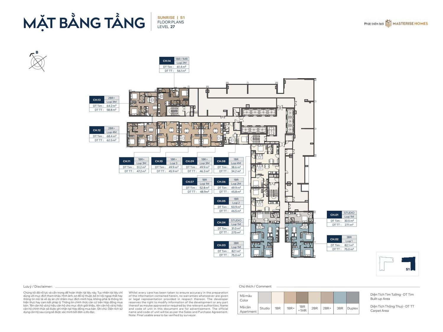 Diện tích căn hộ: 26.9 – 128.1 m2